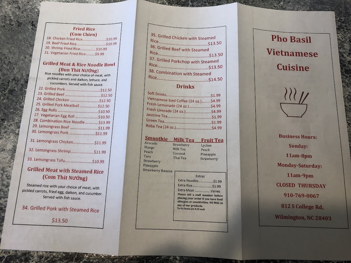 PHO BASIL offers a diverse menu that caters to both traditional and adventurous palates, making it a go-to destination for anyone craving Vietnamese cuisine. Come by, savor the flavors, and see why this local gem is a staple in Wilmington!